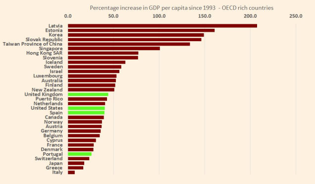 В Латвии самый высокий показатель роста ВВП на душу населения с 1993 года у в сравнении с любой передовой страной мира.